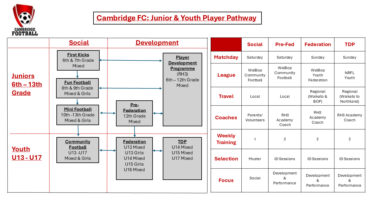 Our Youth Programme is designed to develop Cambridge Football club into the club of choice for players in the Waikato.